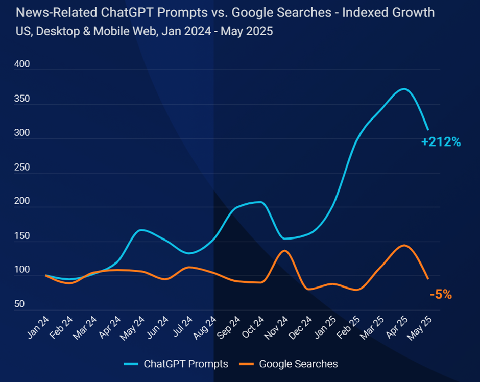 Similarweb. (2025, July). News-Related ChatGPT Prompts vs. Google Searches, Jan 2024–May 2025.